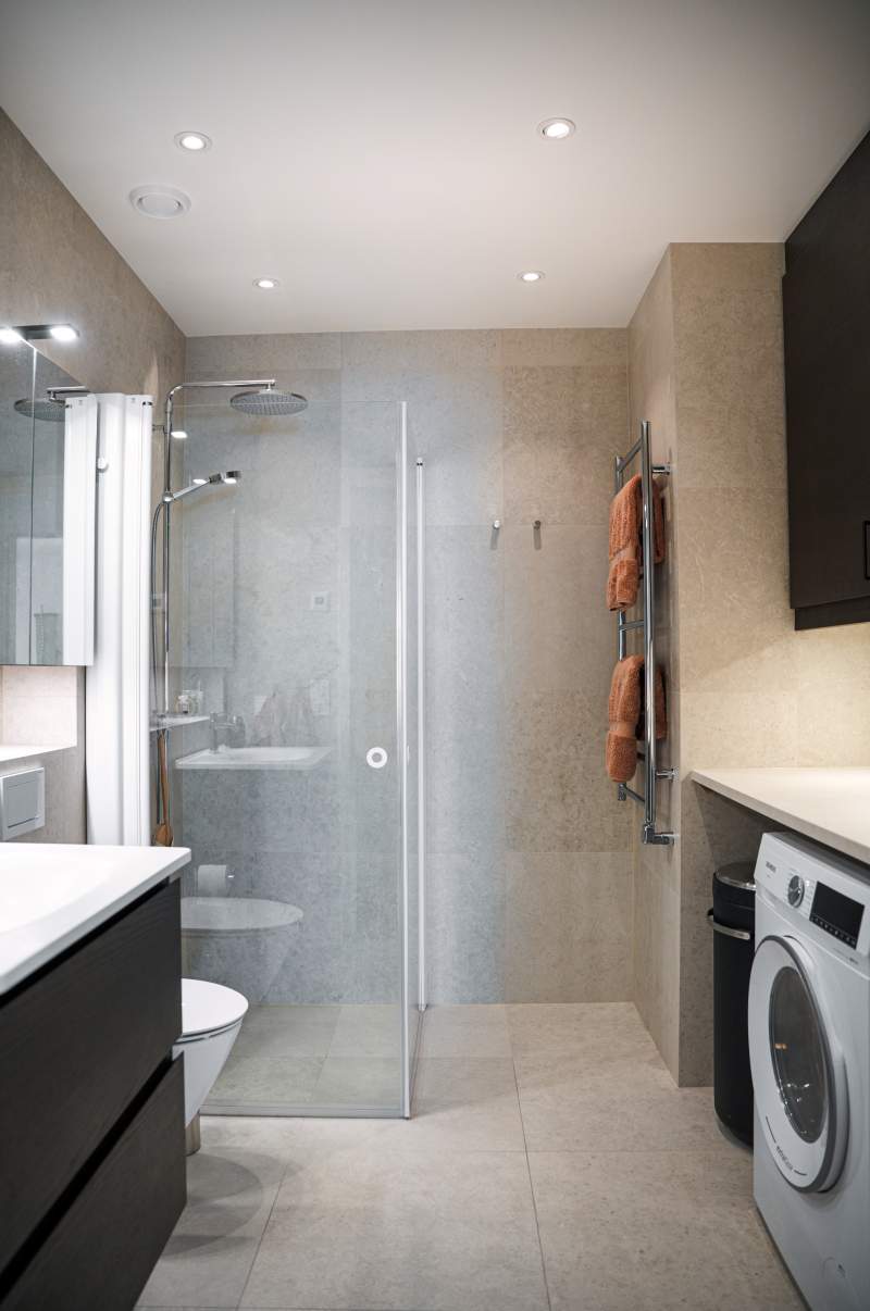 Vi arbetar ofta med plattor i storlekarna 60x60 cm och 60x120 cm, vilket skapar ett stilrent och exklusivt uttryck. Fördelen med större plattor är inte bara estetisk – de minskar även antalet fogar, vilket ger en renare helhetskänsla och ett enklare underhåll.